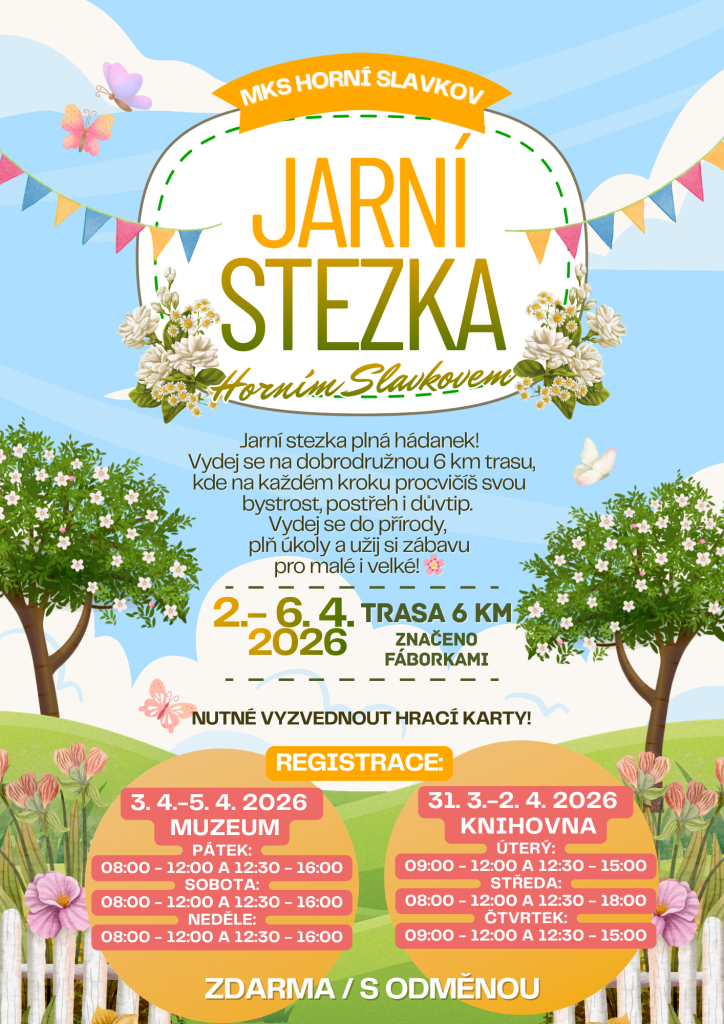 O víkendu dne: 11. - 12. a 18. - 19. 04. 2026 bude, vzhledem k čerpání dovolené, NEDOSTUPNÁ služba CzechPOINTu na pracovišti Městského úřadu v MUZEU, ul. Pluhova 211 v Horním Slavkově.
