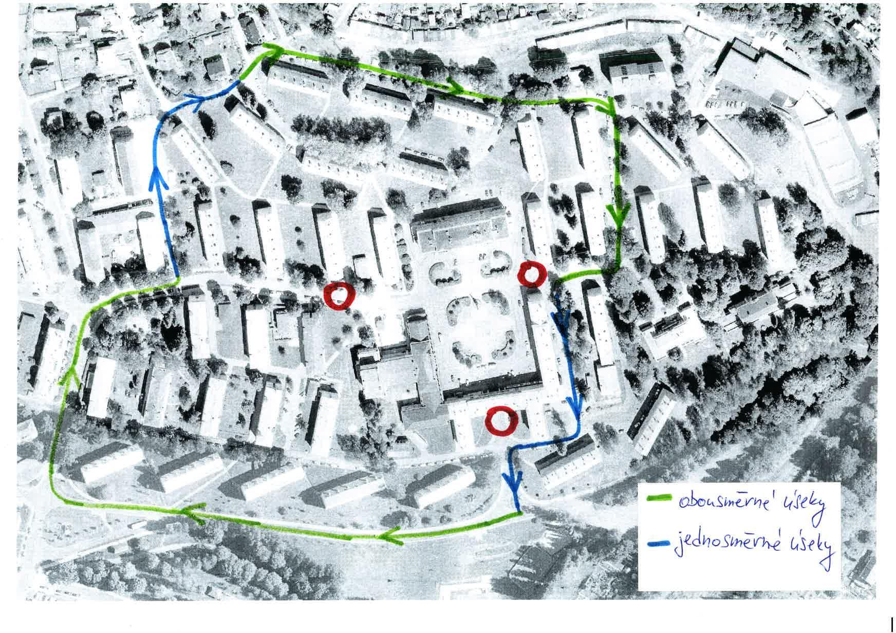 Z ulice Bezejmenná nebude možné odbočit směrem na náměstí. Objízdná trasa je vedena ve směru hodinových ručiček ulicemi Bezejmenná, Dlouhá, Zahradní, zpět do ulice Dlouhá a Poštovní. Pozor - v ulici Dlouhá podél č.p. 635 až k č.p. 629 a podél č.p. 627 a č.p. 628 bude komunikace vedena jednosměrně, a to opačně oproti běžnému provozu. Sledujte aktuální dopravní značení!