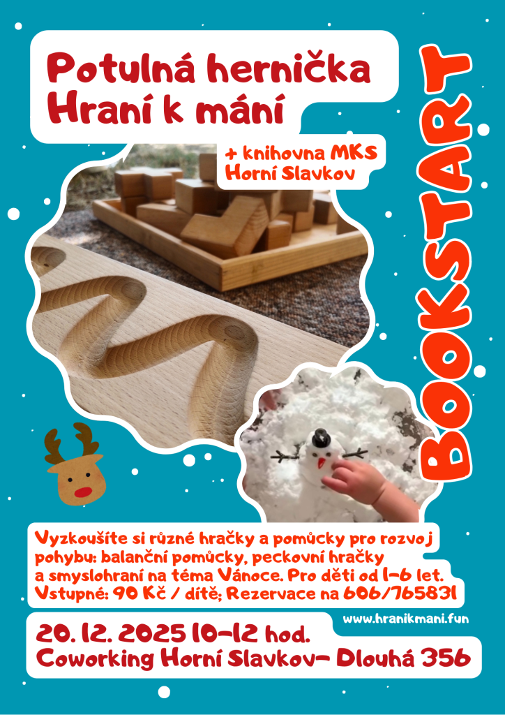 Karlovarská půjčovna hraček Hraní k mání srdečně zve rodiče s dětmi ve věku od 1 roku do 5 let na volné hraní s tvořením a smyslovými stanovišti. Tentokrát na téma Vánoce. Vstupné 90,- Kč / dítě.
