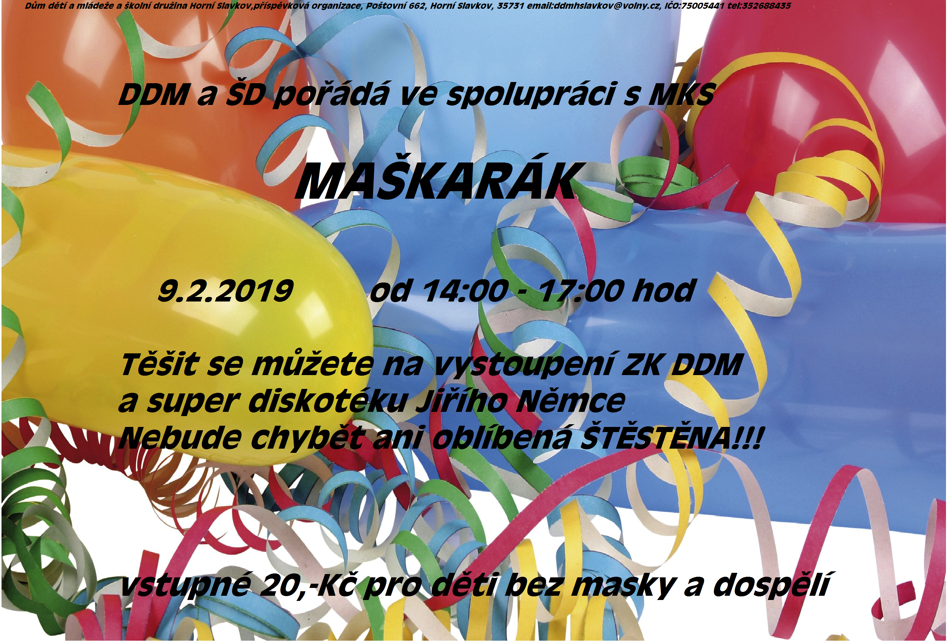 DDM a ŠD pořádá ve spolupráci s MKS MAŠKARÁK. Více v detailu.