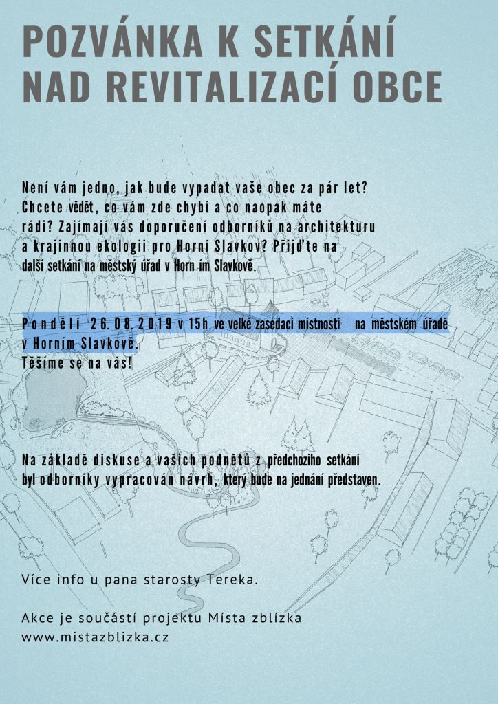 Přijďte na další setkání nad revitalizací obce Horní Slavkov. Na setkání bude na základě předchozí diskuze a vašich podnětů představen návrh vypracovaný odborníky. Více v příloze.