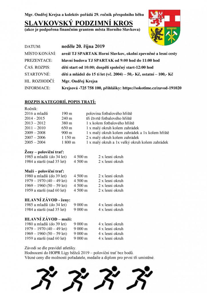 29. ročník přespolního běhu. Akce je podpořena finančním grantem města Horní Slavkov.