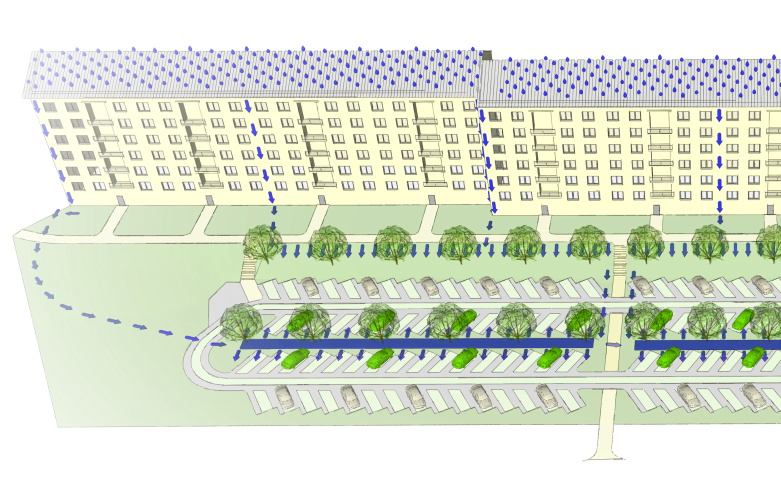 BSS Báňská stavební společnost s.r.o., KV Realinvest s.r.o. a Algon a.s.. nejlevnější pak byla společnost HL Bohemia, která zahájí stavební práce v polovině měsíce března. Stavba je řešena systémem modrozelené infrastruktury, kdy je kladen důraz na využití dešťových vod v místě stavby, spolupůsobení vsakování a evaporizace těchto vod v soustavě propustných povrchů a navržené výsadby zeleně. Využity budou také dešťové ze střech přilehlých bytových domů, čímž dojde ke snížení nežádoucího ředění splaškových vod a odklonění svodů ze suterénů budov.